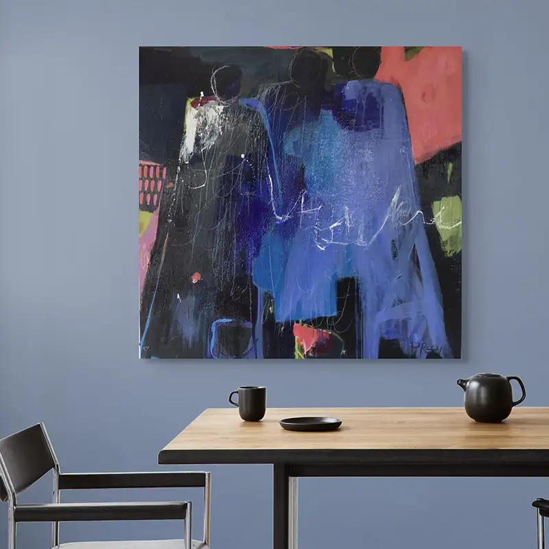 All canvases are sent via tube when shipped internationally. The canvas is removed from the frame and rolled. Restretching canvas is the purchaser’s cost.